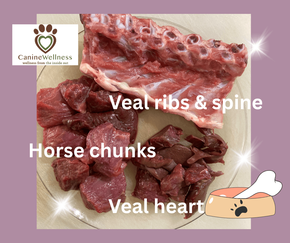 Here we have: 🦴 Veal ribs & spine – rich in calcium, phosphorus, and collagen for bone and joint health. 🥩 Horse chunks – A lean red meat packed with iron, zinc, and B vitamins to support energy, muscle function, and vitality. ❤️ Veal heart – A nutrient-dense meat full of taurine, CoQ10, and B vitamins, supporting heart health and overall wellness.
